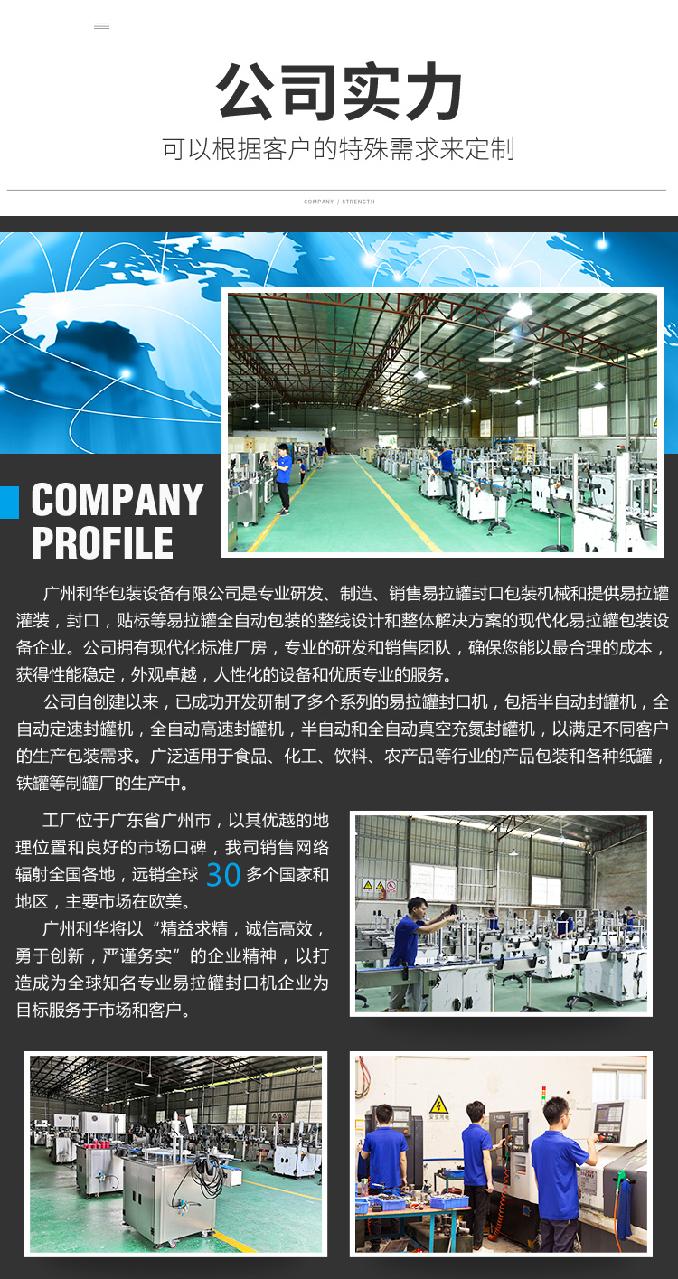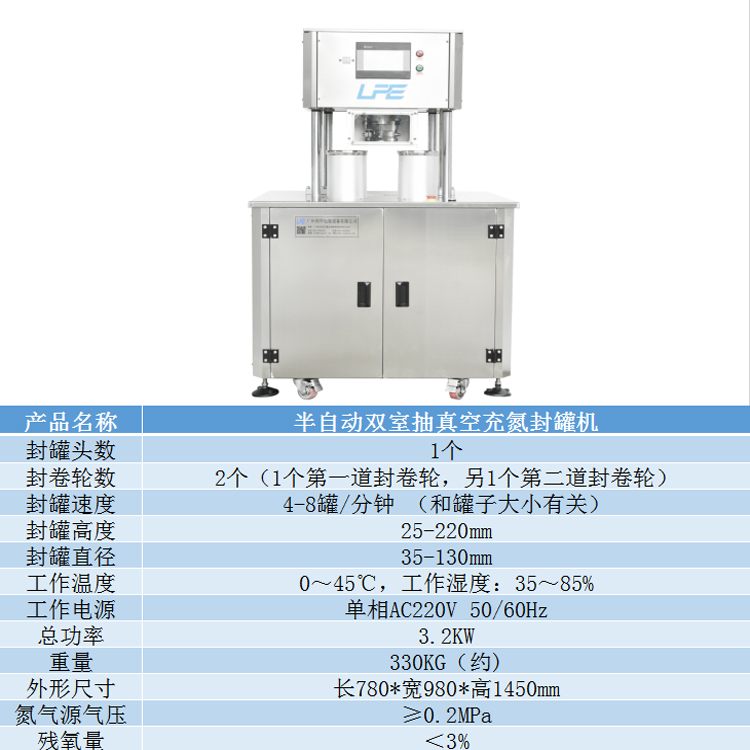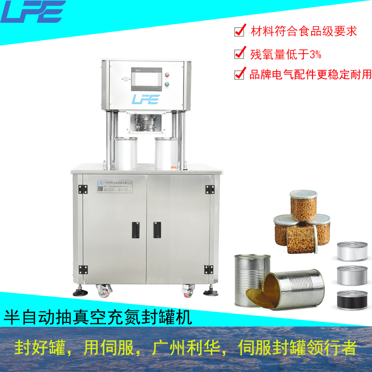 適用於各種圓形開口的馬口鐵罐,鋁罐,紙罐和塑料罐包裝(zhuāng)的產品先抽(chōu)真空,然後充氮氣,最後(hòu)封口.